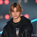 リルーシュはブラックのレザージャケットに、ダメージが入ったブラックのパンツを合わせたスタイリングを披露。終始クールな表情で、圧倒的な美貌を放っていた。