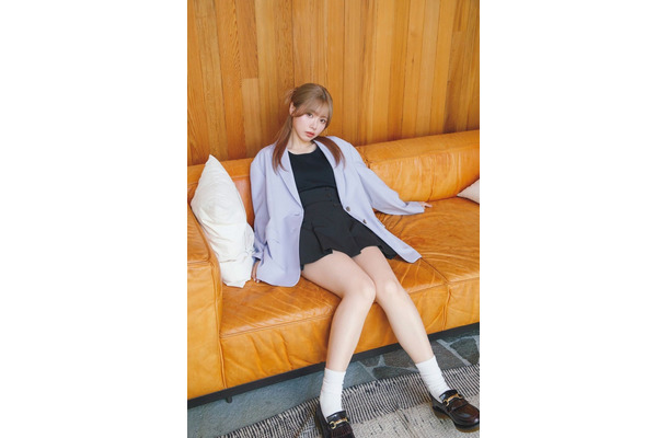 今回公開されたのはパープルのジャケットにブラックのミニワンピをコーディネートした、Liyuuの抜群スタイルが際立つ2カット。身長167cmと長身のLiyuuが、ジャケットをナチュラルに着崩してみせたりと、ファッションモデルさながらのポージングを披露している。