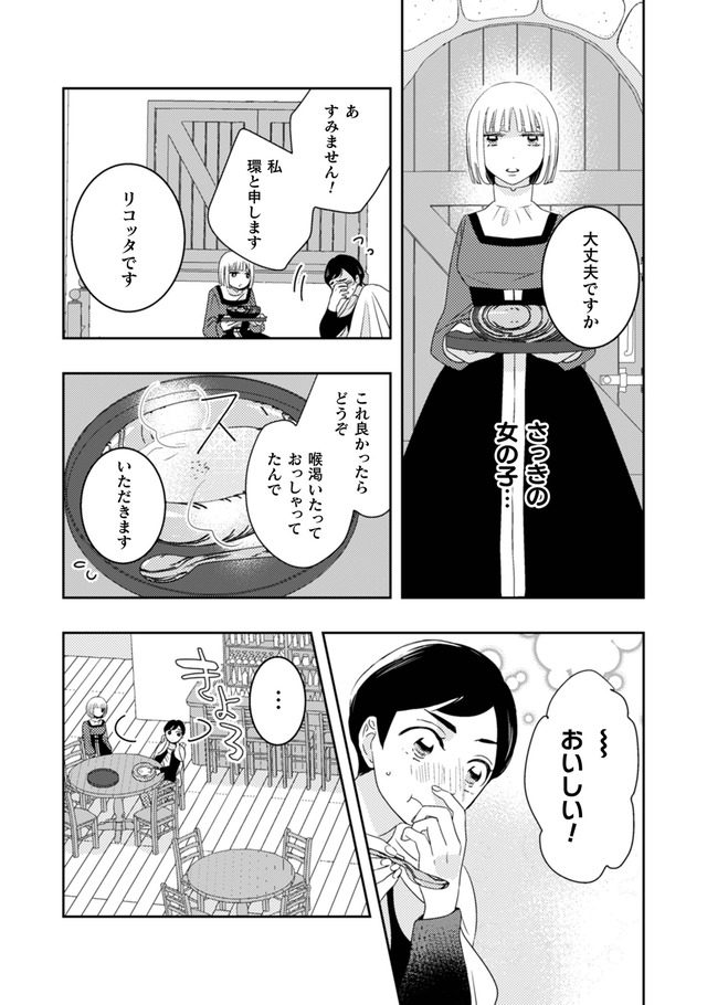 派遣切りOL、料理で異世界の人びとの胃袋をつかむ! 身寄りがないうえ職を失い、自暴自棄になった環は、期限切れのパンをやけ食い。お腹を壊してトイレで苦しんでいると、どういうわけか異世界に飛ばされてしまった。小料理屋「トゥット」の店主リコッタに助けられ、閉店寸前の店を手伝うことになった環。リコッタとともに、料理の楽しさに気づいていく。心もお腹も温まる「異世界転生×料理」まんがをお楽しみください。