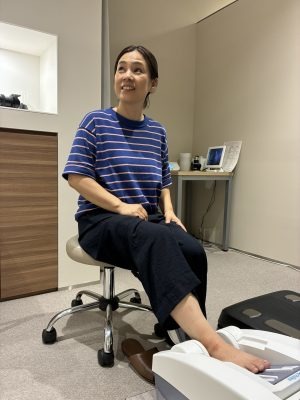 骨密度測定は足のかかとで行いました。先ほどカメラマン廣江さんが座っていたのがこの装置です。