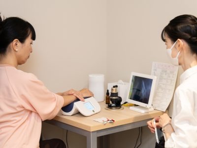 まずはカウンセリングからスタート。糖化測定や骨密度もチェック、血管観察では…!?