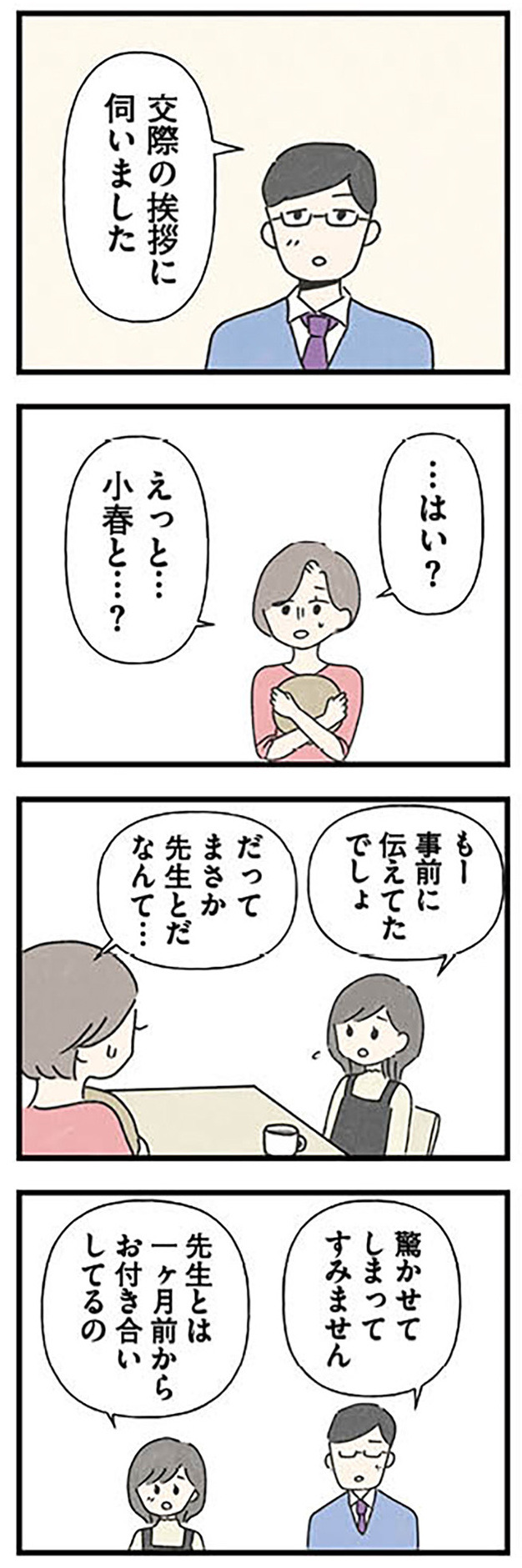 熱心に小春に勉強を教えてくれる森先生。おかげで小春の成績も上がっていき、安心していたが、小春が「ママに会わせたい人がいる」と言い、交際相手として連れてきたのはなんと塾長の森先生だった…。