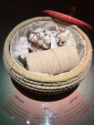 このゾーンの展示内容にもひと工夫あります。クウェートと周辺各国との交易に関する展示、並んだバスケットにはクウェートの産品が収めてあり、蓋を開けて中身を拝見するのですが。