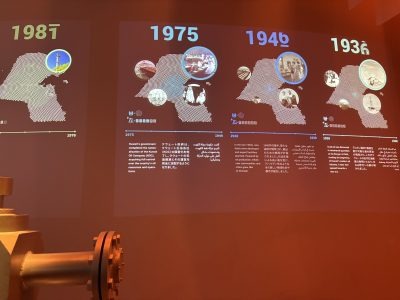 こうした歴史を立体的に解説したコーナー。ハンドルをくるくる回すと時代が進み、編年でクウェートの変化を知ることができます。高度経済成長を迎えたのは日本と同時期ですから、メンタリティには近いものがあるのかも。