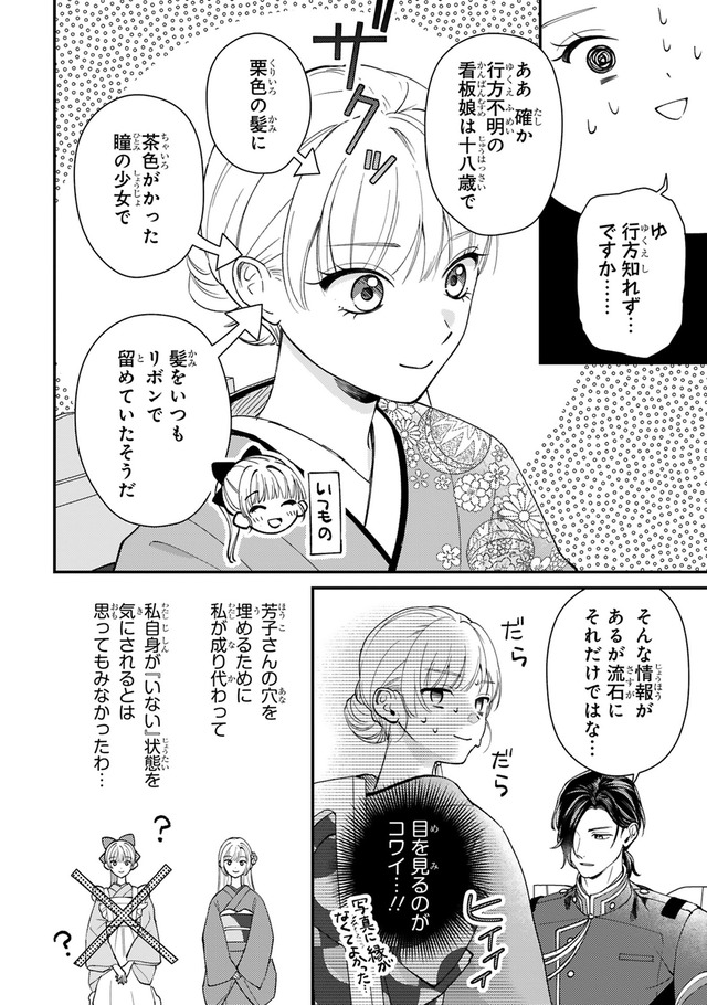 和モダンな世界を舞台にした秘密のロマンス! 家族経営のカフェーが全焼し、窮地に立たされた栗橋光。そんなとき、成金の資産家・剣菱家から、駆け落ちした一人娘・芳子として、華族である黒田家の嫡男・靖親の婚約者のフリをしてほしいと頼まれる。光は家族のために、靖親の婚約者としていっしょに暮らしはじめるが…。「第1回フレックスコミックス漫画原作大賞」金賞を受賞した極上のラブストーリーをお楽しみください!