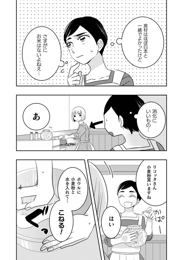 派遣切りOL、料理で異世界の人びとの胃袋をつかむ! 身寄りがないうえ職を失い、自暴自棄になった環は、期限切れのパンをやけ食い。お腹を壊してトイレで苦しんでいると、どういうわけか異世界に飛ばされてしまった。小料理屋「トゥット」の店主リコッタに助けられ、閉店寸前の店を手伝うことになった環。リコッタとともに、料理の楽しさに気づいていく。心もお腹も温まる「異世界転生×料理」まんがをお楽しみください。