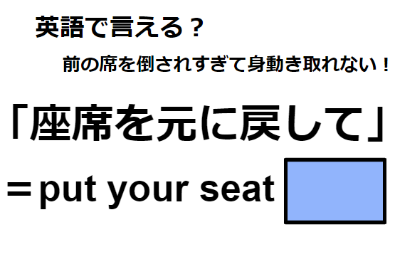 リクライニングを元に戻すという意味で紹介していますが、例えば会議などで動かした椅子を元の位置に戻してほしい時などにも使えるフレーズになります。