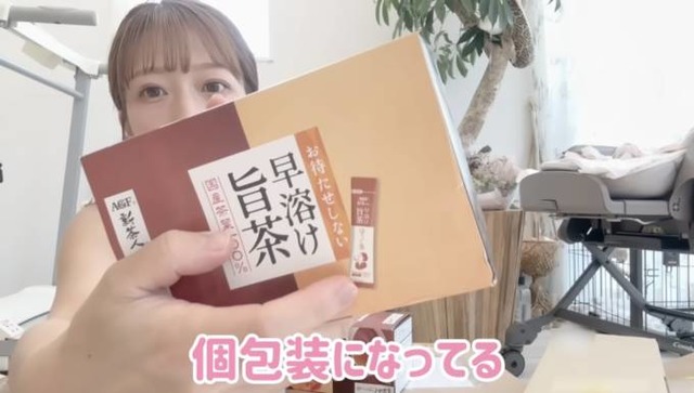 辻さんは、「お水にこの個包装になってるほうじ茶の粉があって、それを混ぜて飲んでるんですけど。これがね、すっごい美味しいし、すぐ溶けてくれるからめっちゃ使いやすくて」「マジでめちゃくちゃ飲んでます」とコメント。