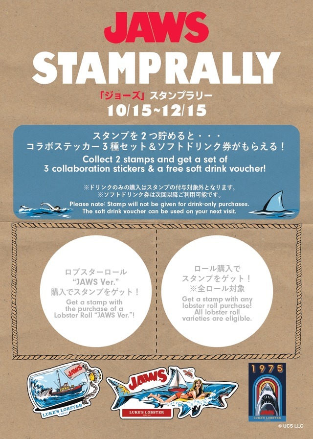 ロブスターロール専門店「LUKE'S LOBSTER」と映画『ジョーズ』(原題:JAWS)のスペシャルコラボレーションメニューが10月15日(水)より販売開始となる。
