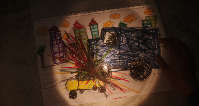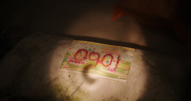 さらに確認できるのは、団地の下には謎の巨大な空間があり異物が放置されている光景や、子どものイラスト帳に描かれた交通事故らしき絵と、「901」と血文字で書かれた気味が悪い描写を目の当たりにできる。