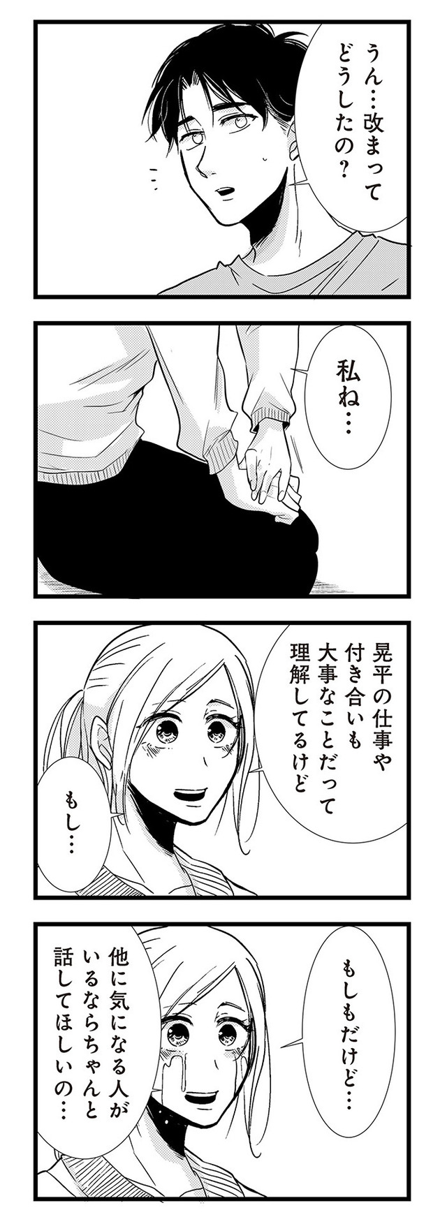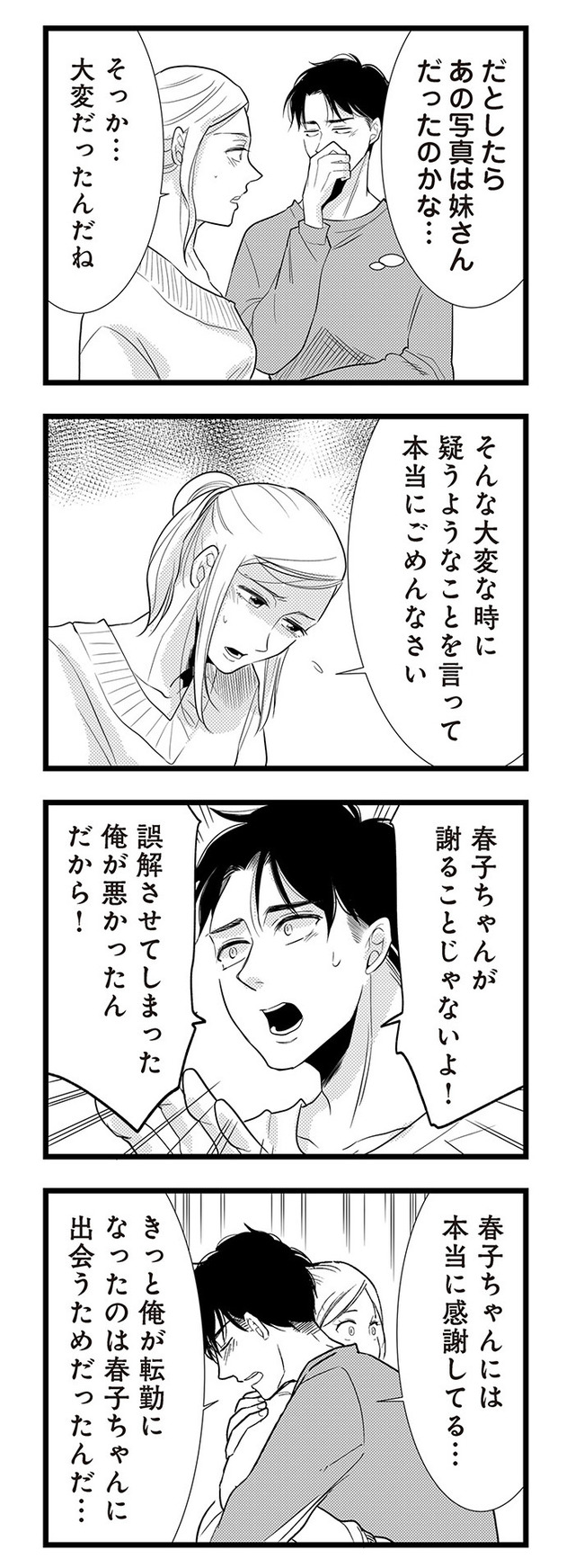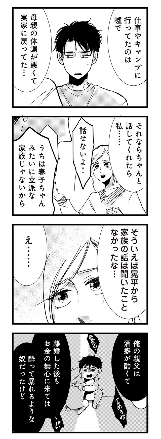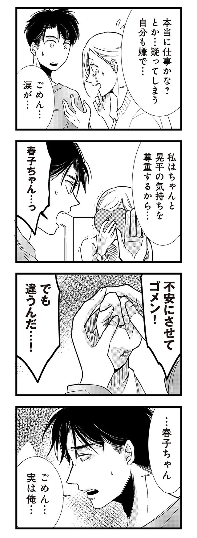 ところがある日、晃平から「これからは平日に会わない?」という謎な提案が…。胸に不安を抱えつつも彼を信じようとする春子。