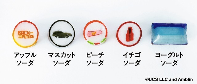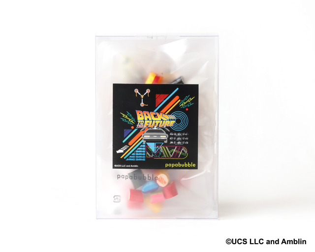 主人公マーティが大好きなコーラをベースにした「キャンディA」、爽快なソーダフレーバーを集めた「キャンディB」。あの味を思わせる味わいや、未来のカフェで手に取った気分を楽しめるアレンジも加わり、口に入れた瞬間に映画の世界へタイムスリップ!