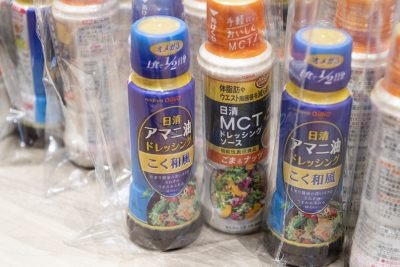 齋藤先生の解説のあとは、試食タイムへ。会場の参加者へ味噌汁にサーブされ、アマニ油とMCTオイルが置かれました。