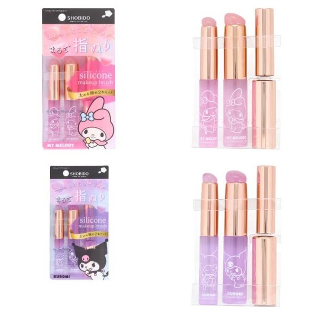 太めと細めの2本セットで、コンシーラーやクリームチーク、ノーズシャドウ、リキッドシャドウ、リップカラーなど幅広い用途に対応。ピンク(マイメロディ)とパープル(クロミ)のカラーで、毎日のメイクタイムを楽しく彩るデザインに仕上げられている。