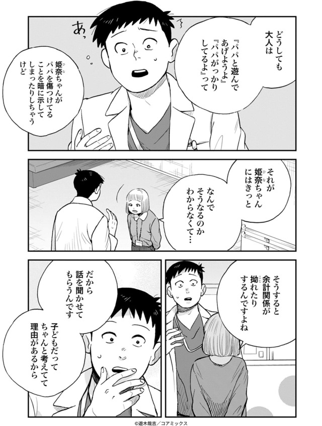 パパが大好きだった6歳の女の子が、入院中のあるタイミングから「パパきらい!あっち行って!」と父親を拒絶し始めました。原因がなかなかわからず、お父さんや周囲の大人は戸惑いばかりで……ところが、私が彼女と遊んでいる最中に、急にパパと遊ぶのを避けるようになった理由が判明したんです。
