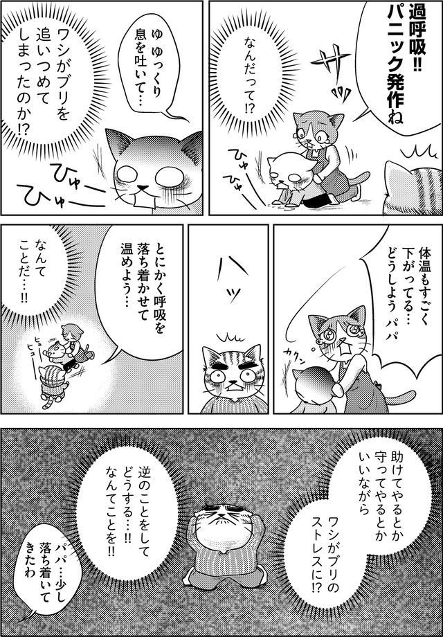 ブリ猫。父は定年間近でもバリバリ働き、娘・ブリ猫。は二人目の子供を出産したばかり。公私ともに順風満帆!……のはずだった。ある日、ブリ猫。が意識混濁で緊急搬送されたことで、初めて娘が“精神科”にかかっていること、薬を大量に飲んでOD(オーバードーズ)したことを知り……!?「何が原因?」「うつ?」「心の病気?」わからないことだらけだけど、患者とその家族が”双極性障害”を受け入れて生きていく……その半生を描いた感動の実録エッセイ!