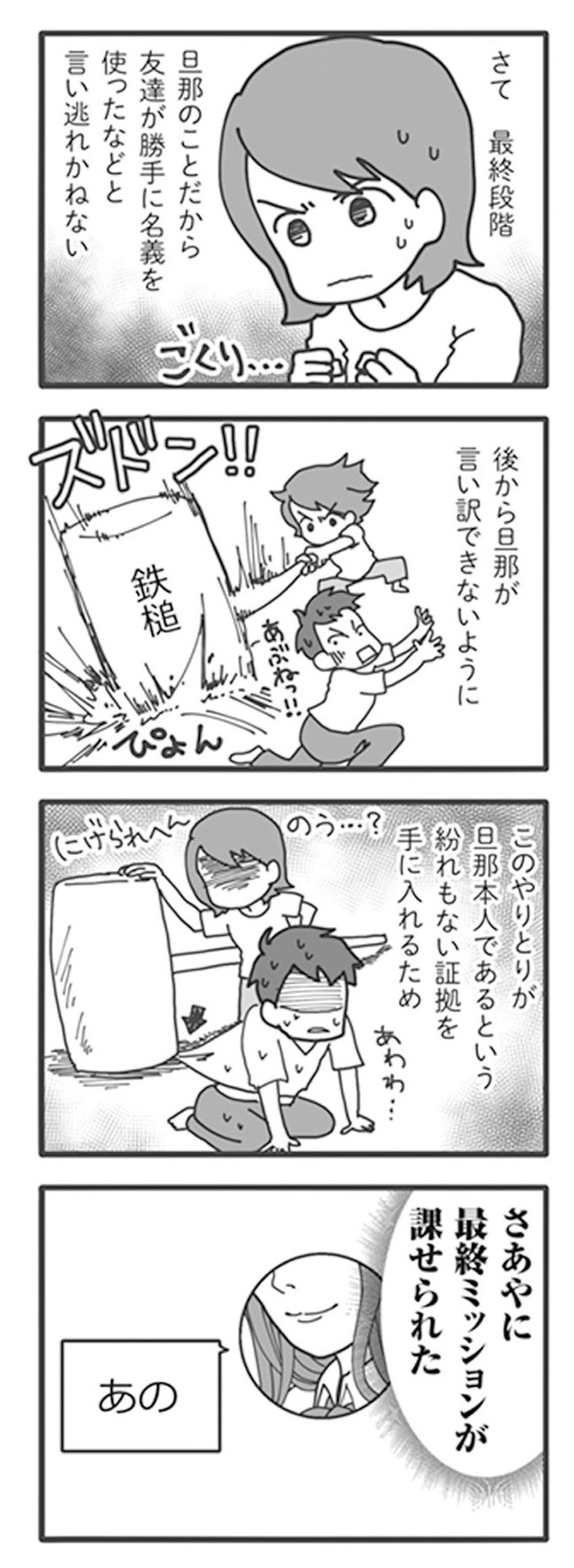通知を隠しもせずアプリを続けるその神経に怒り心頭の嫁は、旦那の好みの女性になりすまし、潜入捜査を開始する!