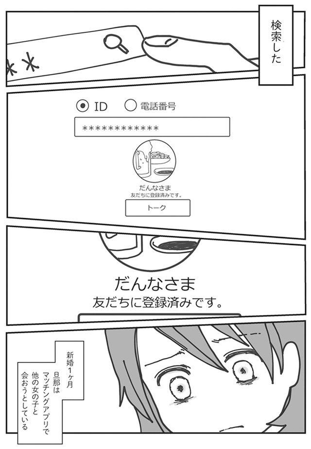 ※本記事は原案・もなか、イラスト/漫画・蒼衣ユノの電子書籍『旦那がマッチングアプリでやりとりしてる相手は嫁です』から一部抜粋・編集しました。