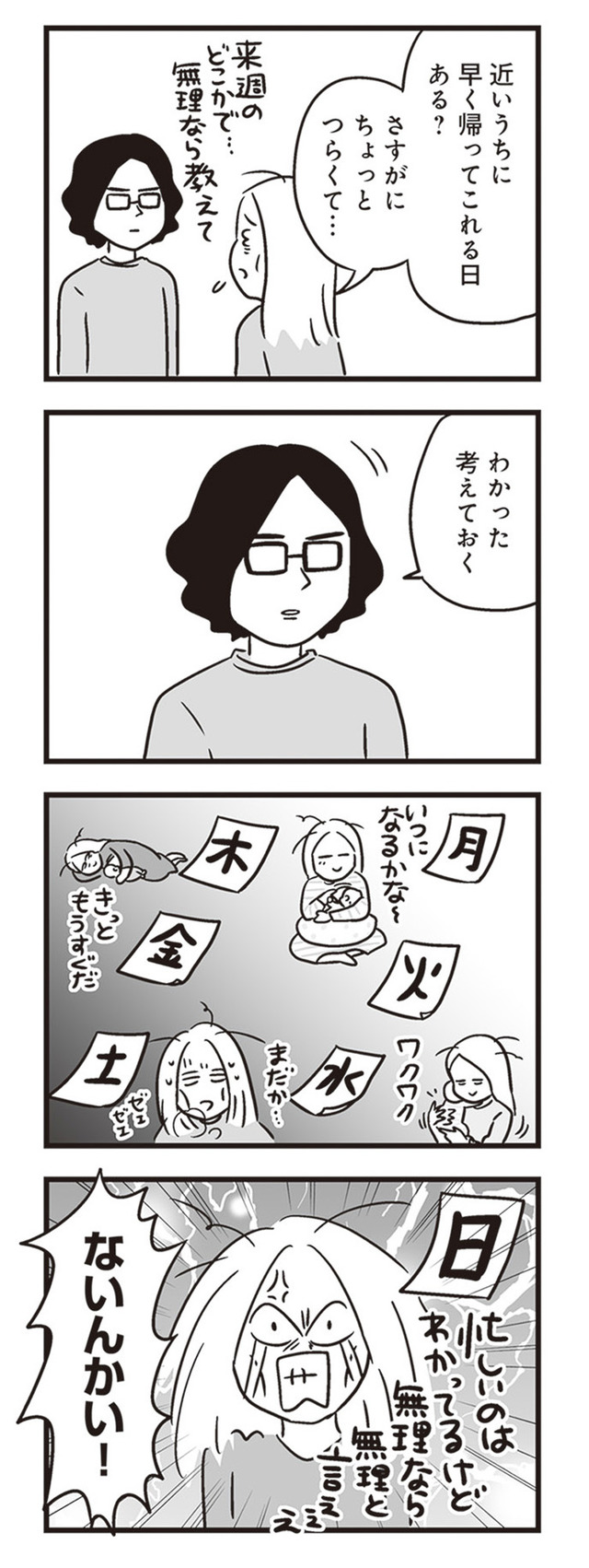 出産前に会社を立ち上げ、いつも残業続きで育児に協力してくれない夫。