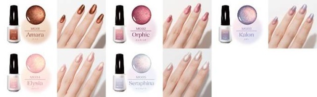 冬限定のマグネットカラーコレクションは、神秘的なオーロラをイメージ。光のヴェールのように指先で揺らめく幻想的な輝きを放ち、今冬のトレンドを取り入れた5色がラインアップ。