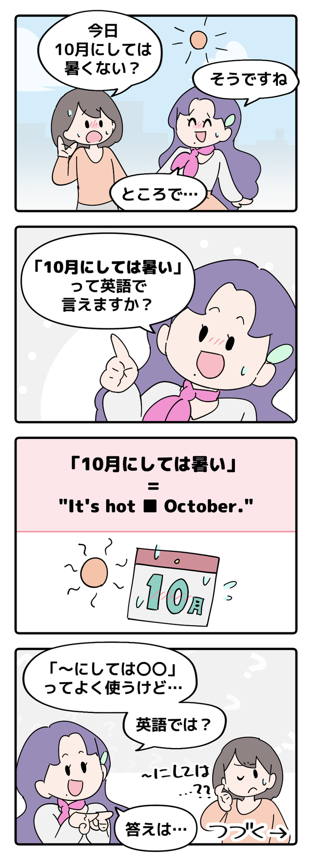 マンガでわかる!英語で「10月にしては暑い」はなんて言う? | NewsCafe