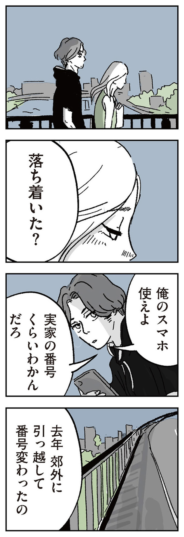 親切な青年に助けられるが、なんとか持ち直して家に帰ろうとすると、パニック状態になり「帰れない」自分に気づく。