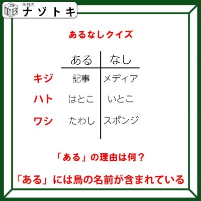 というわけで正解は「ある」には鳥の名前が含まれている。でした。