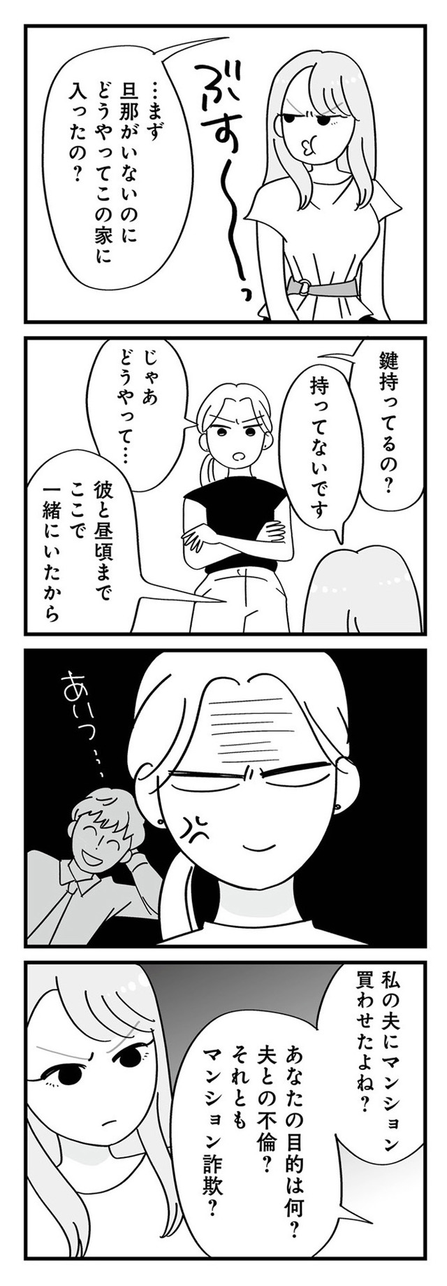しかもその相手は、夫に高額マンションを売りつけようとする詐欺師だった!