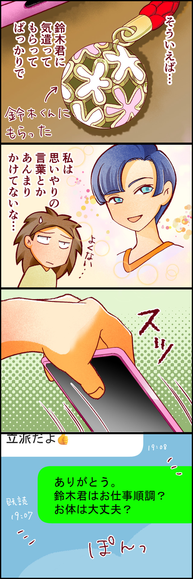 「鈴木くんから、思いやりを受け取るばかりだった」と気付いたさつき(そう、さつきは鈴木くんの本心をまだ知らないのです…)鈴木君を気遣うメッセージを送ります。すると……