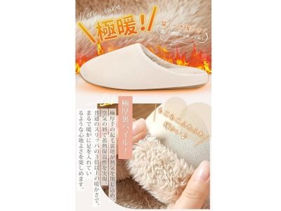 【極厚裏パイル】やわらかな踏み心地♪ 裏地のあったか起毛で熱気を閉じ込め、保温性は普通のスリッパの3倍以上! クッションのきいた厚底ソールで疲れにくい構造です