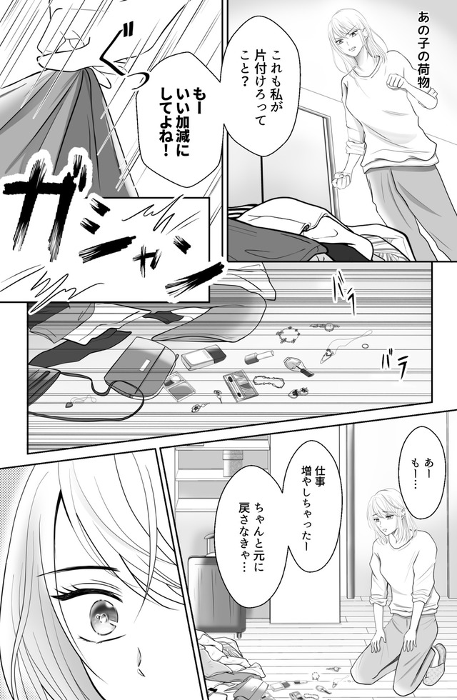 イライラして掃除をしてたらお客様の荷物をぶちまけちゃった!そこで見つけたのは…?【夫の不倫相手は、推しの地下アイドル(男)でした。 #32】 | NewsCafe