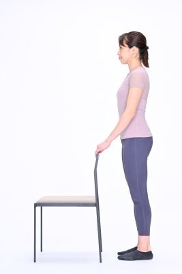 ひざを伸ばしたままかかとをできるだけ高く引き上げて、つま先立ちになる。
