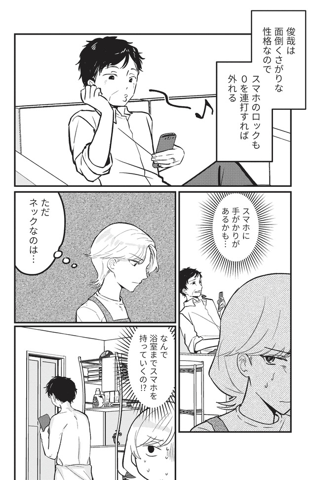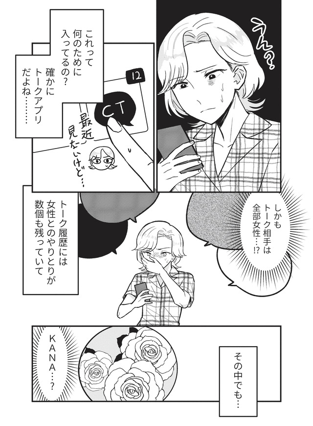 まさか夫が犯人…? ミヤコが夫のスマホを探ると、夫の「パパ活」が判明する。