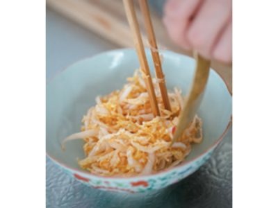 ボウルにたれの調味料を混ぜ、白菜の芯を入れて箸でよく和える。