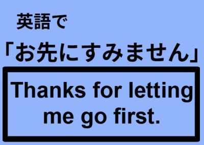 直訳すると「先に行かせてくれてありがとう」ですが、「行く」だけでなく「使う」や「言う」など順番を譲ってくれたときにはどんな場面でも使うことができる感謝の表現です。