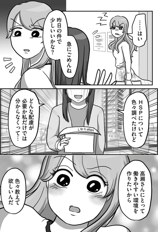 同じ部署に新入社員が配属されて、加藤さんが指導することになるが…新人は自称HSPだった!