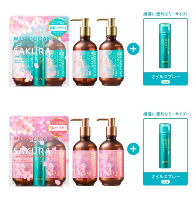モロッカンビューティ ハイドロリペア ミニオイルスプレー付き 限定キット サクラの香り【キット内容】・ハイドロリペア シャンプー(サクラの香り) 430mL・ハイドロリペア ヘアトリートメント(サクラの香り) 430mL・ディープモイスト クイックグロス オイルスプレー(プリズムローズの香り) 40g【希望小売価格】3,190円(税込)