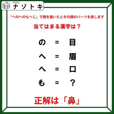 クイズです!「の=目、へ=眉。では、もは?」見たことがあるはず!【難易度LV3.・中辛】