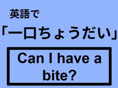 「一口くれる?」「一口もらっていい?」食べもののときは bite を使います 。ぜひ覚えておいてくださいね。
