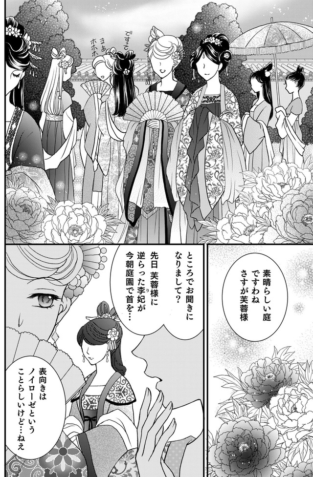 そんなとき「傾国の美女」と謳われる上級妃、蘭楊(らんよう)が見るに見かねて助け船を出してくれたことで、意気投合した二人は後宮の争いから一線を引いて楽しく過ごすことになるのだが、二人が居るところは愛憎渦巻く場所……。ひょんなことから後宮内で起こった事件に莉花が巻き込まれてしまい……!?