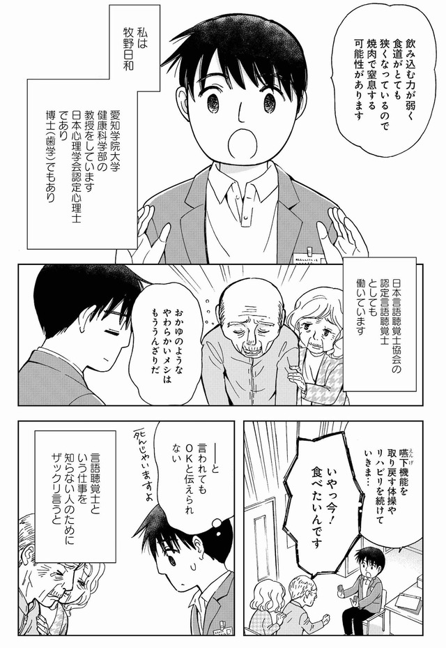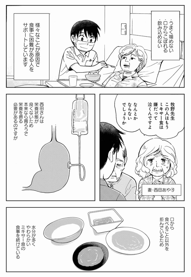 口から物を食べられなくなった人のケアをする言語聴覚士の牧野日和先生が、長年経験してきた様々な人の様々な選択を漫画でご紹介します。