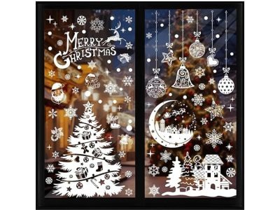 FINGOOO クリスマス ステッカー 窓 シール 飾り 9枚 20×30CM・202pcs ウォールステッカー 剥がせる ジェル 静電気 ガラス 防水 両面 汚れない ホワイト (クリスマス 白)