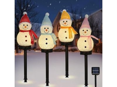 【ソーラーガーデンライト】家計にも環境にも優しい「ソーラー充電式」。 日中に充電し、夜は自動点灯。かわいらしいLED雪だるま4個でこのお値段はコスパいい!
