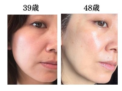 10年前は頬の位置が低く、長く深く刻まされたほうれい線が気になる、顔の下半分が特に老けた状態でした。頬には涙型の毛穴が広がっていて、斜め上に皮膚を引っ張れば、毛穴もクマもほうれい線も目立たなくなるのにといつも思っていました。