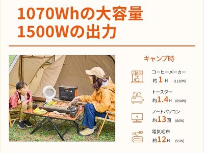 迷ったらコレ! Amazon「ポータブル電源」売れ筋ランキング1位。3人家族で安心して1日の停電をやり過ごせるパワー。なんと「53%OFF」中♪