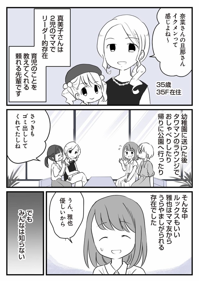ママ友たちから羨ましがられるイクメン夫。しかし、家での本当の姿は?【タワマンのママ友に夫の不倫をバラされた #1】