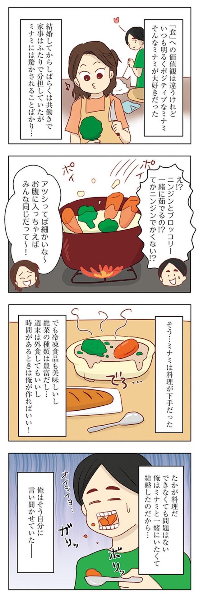 ある日、夫から「飯がマズすぎて、離婚が頭をよぎることもある」と打ち明けられる。