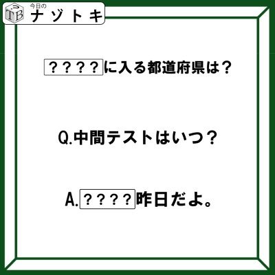 クイズです!「中間テストはいつ?〇〇〇〇昨日だよ」〇〇〇〇には都道府県名が入ります。どこでしょう【難易度LV2.・甘口】 | NewsCafe