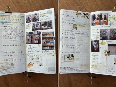 手帳見開きの左側にはその日取り組んだ内容を、右ページにはBefore/Afterの写真や気づきなどをメモ