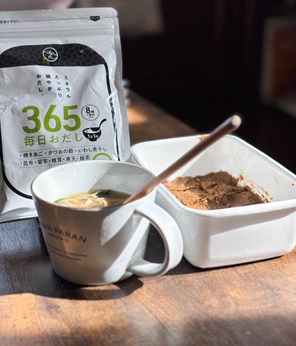 365毎日おだしは特に忙しいオトナ世代におすすめとのこと。その理由は「味噌に混ぜ込んでおくと、味噌玉として忙しい朝に味噌汁が飲めるから!」とのこと。確かに〜。味噌汁も味噌を足さなくても、これを足したら旨みで味がグーンとよくなるそう。試してみたい。
